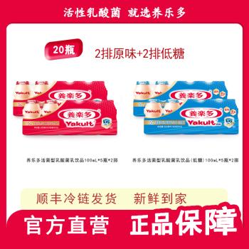 养乐多 活菌型乳酸菌乳饮品 原味100ml*5瓶*2排+低糖100ml*5*2排
